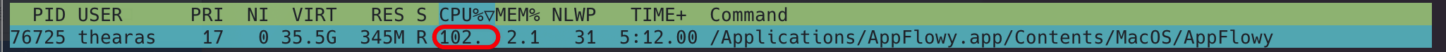 The CPU usage of AppFlowy is always greater than 100: